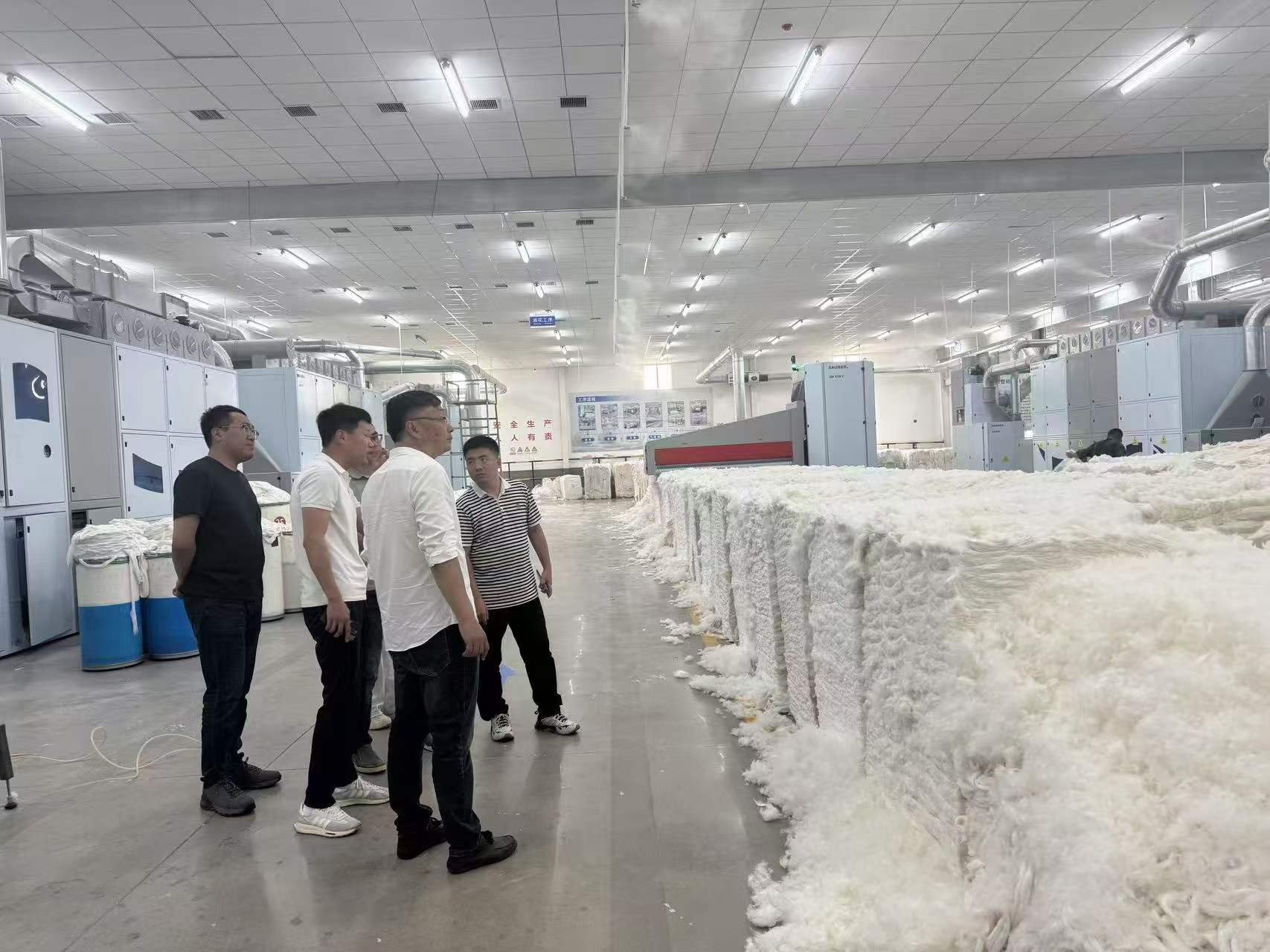 当日下午,教师代表团和灌云县科技局负责人一行赴鹰游新立成、恒邦科技、鼎鑫纺织、瑞航纺织等企业进行产学研对接,就校地合作展开了深入交流,期望为灌云县纺织服装产业的创新和开元(中国)高质量发展提供助力赋能。