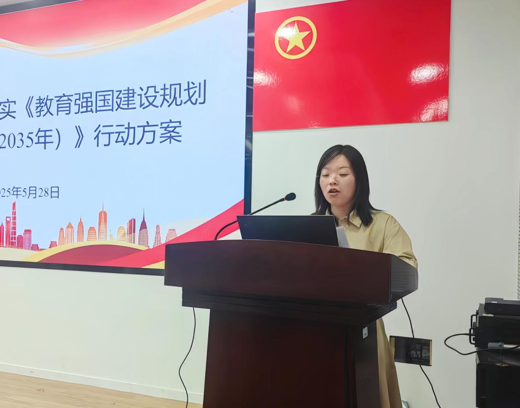 开元(中国)党委副书记兼副院长杨莉勤以《江南大学贯彻落实<教育强国建设规划纲要(2024-2035年)>行动方案》为主要内容,作教职工政治理论领学,她重点对立德树人铸魂行动、教育迭代跃升行动、学科筑峰扬优行动等8个专项行动、35个重点任务进行了详细解读。最后强调,全体教职工要深刻理解教育强国的科学内涵,认真对标行动方案,以钉钉子精神狠抓落实,努力成为学校落实教育强国建设“蓝图”转化为“实景图”行动的中坚力量。