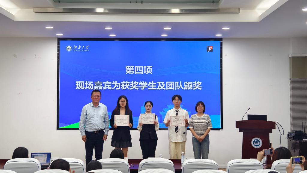 现场嘉宾为获奖学生及团队颁奖