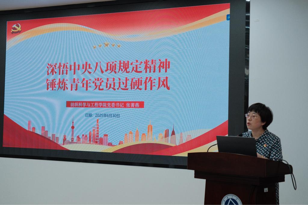 张菁燕以《深悟中央八项规定精神 锤炼青年党员过硬作风》为题讲授专题党课。她围绕党的十八大以来深入贯彻中央八项规定精神的成效与经验,系统讲解了开展学习教育的重大意义和实践要求。同时,结合高校学生违纪案例,通过详实数据与案例警示,深刻剖析全面从严治党向基层延伸的政治深意。最后,立足青年党员成长,号召全体党员以行践诺,用坚定信仰和优良作风为强国建设砥砺担当。