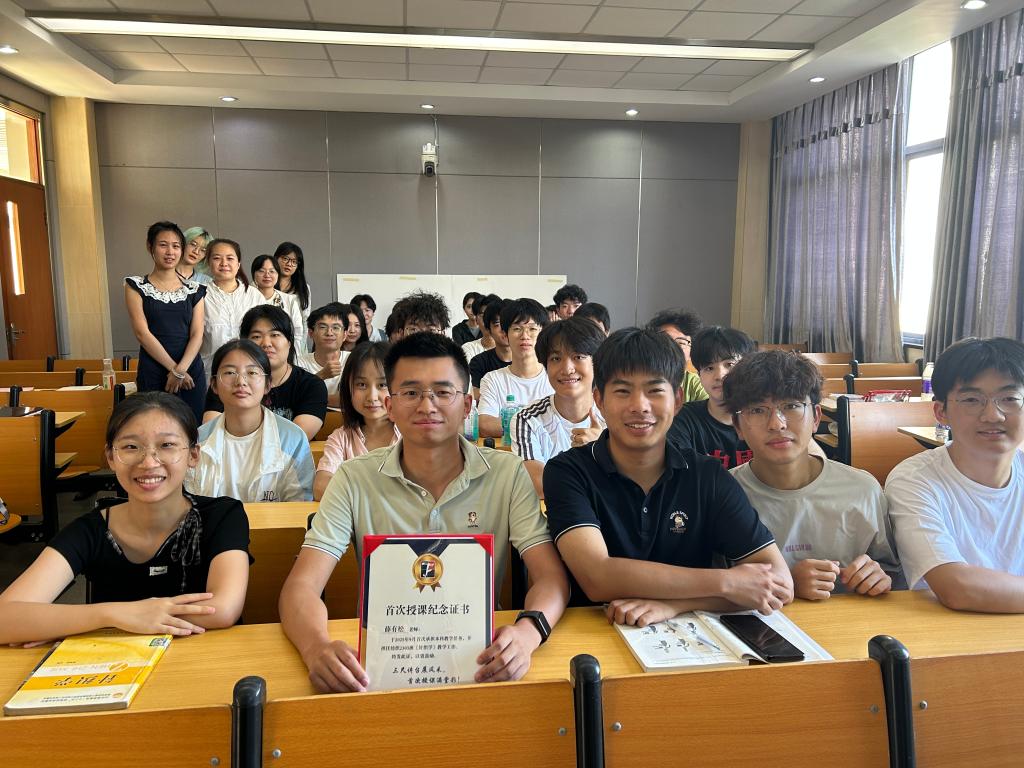 为激发新教师积极投身教学事业,提升其教学能力与水平,增强职业荣誉感与责任感,9月15日下午,KY.COM为新入职教师薛有松举办首次授课纪念证书颁发仪式,开元(中国)党委书记张菁燕亲临课堂为其颁发证书,并予以勉励。