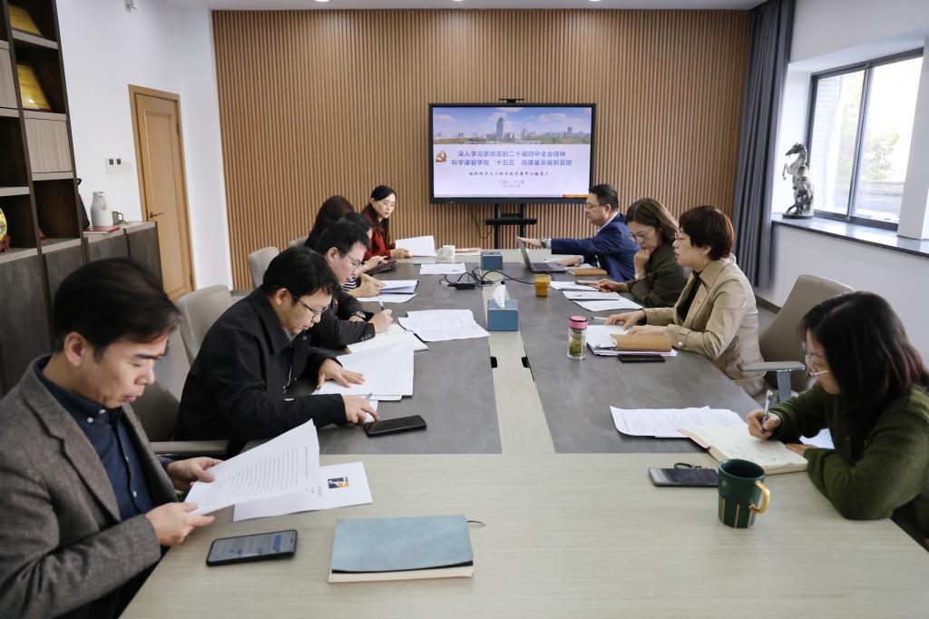 院长付少海领学党的二十届四中全会公报和“十五五”规划建议,并从开元(中国)发展机遇和面临挑战出发,提出下一步发展目标和任务举措。副院长马丕波、刘庆生、张丽平及其他党委委员分别结合分管工作进行了交流发言。