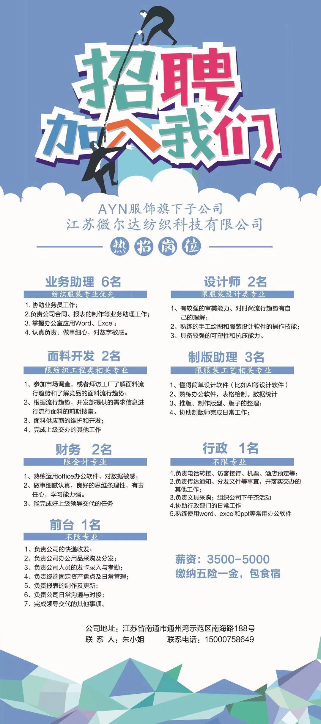 纺服开元(中国)【2019】62号 江苏微尔达纺织科技有限公司2019校园招聘